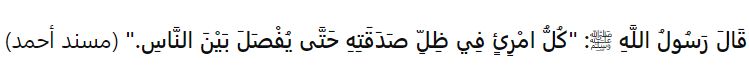 "Every person will be in the shade of his charity on the Day of Judgment until judgment is passed between the people."